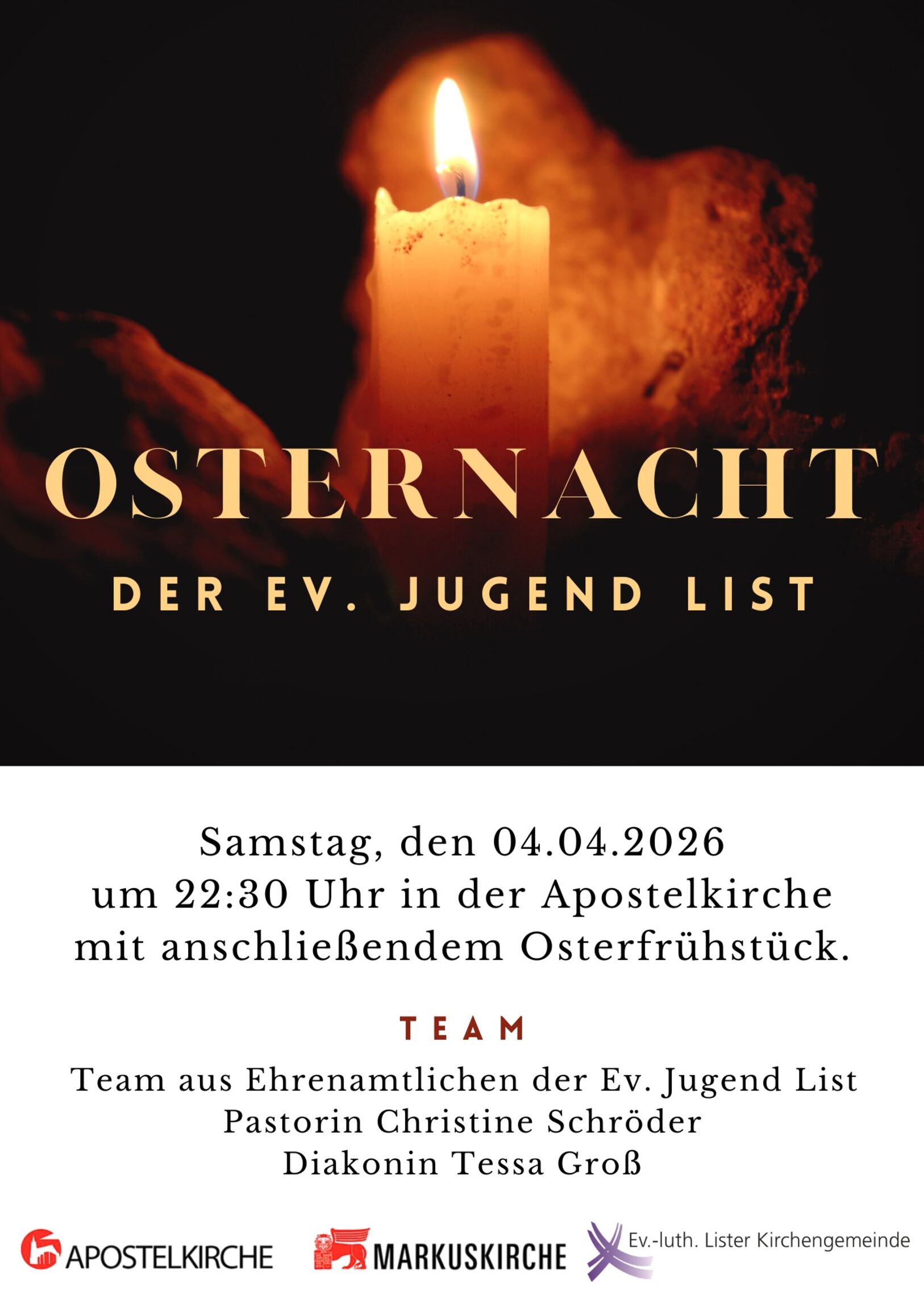 Es freut sich auf euch ein Team aus Ehrenamtlichen der Evangelischen Jugend List, Pastorin Schröder und Diakonin Tessa Groß.