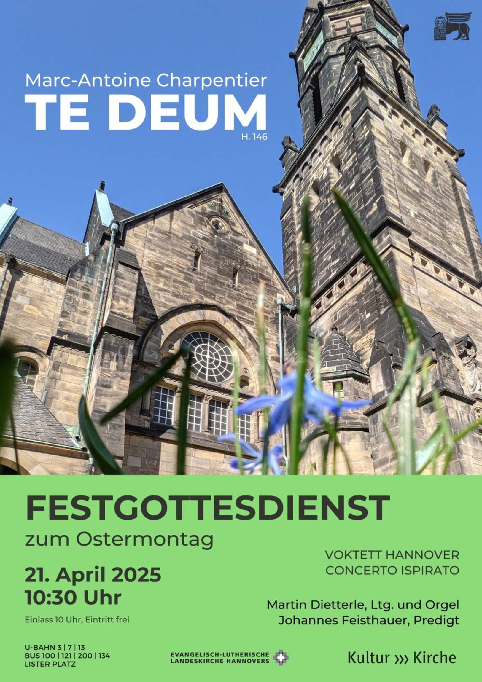 Dieses Jahr können Sie sich am Ostermontag, 21. April um 10:30 Uhr auf das Te Deum von Charpentier freuen. Es musizieren das Voktett Hannover und das Barock-Orchester Concerto Ispirato.