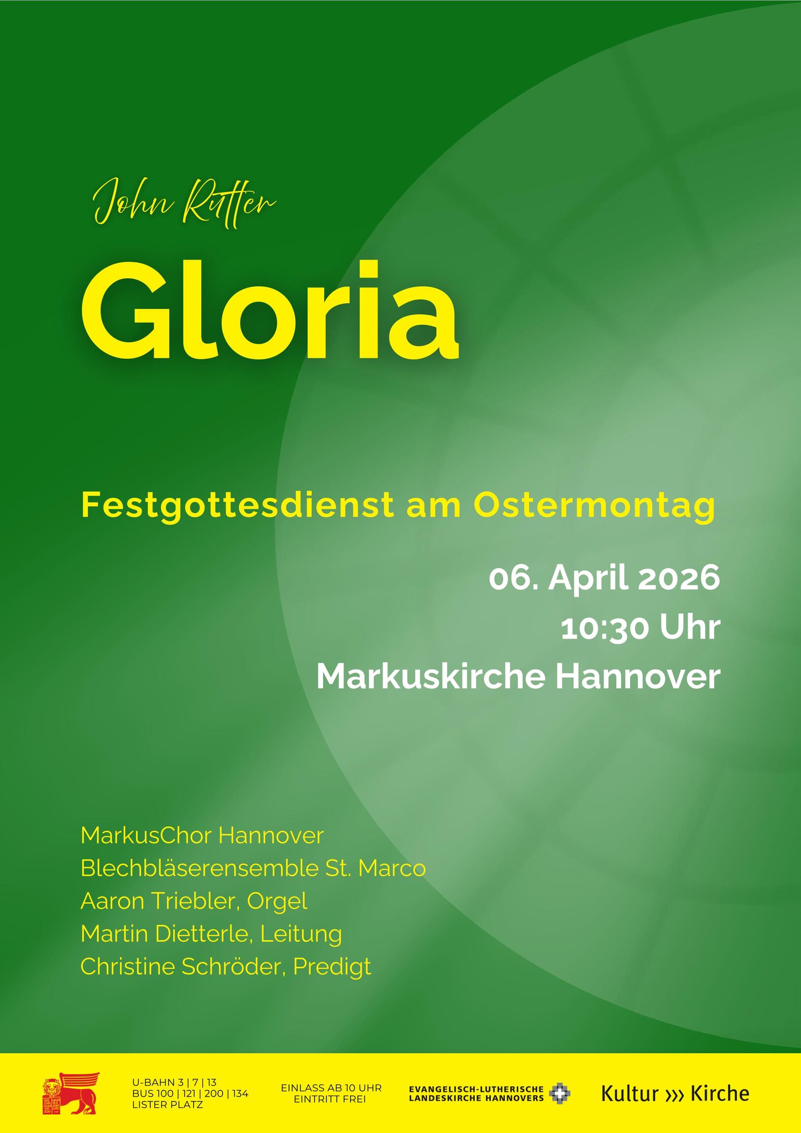 Gemeinsam mit dem Blächbläserensemble Str. Marco und Aaron Triebler an der Orgel wird der MarkusChor Hannover unter der Leitung von Martin Dietterle dieses Chorwerk im Gottesdienst aufführen.